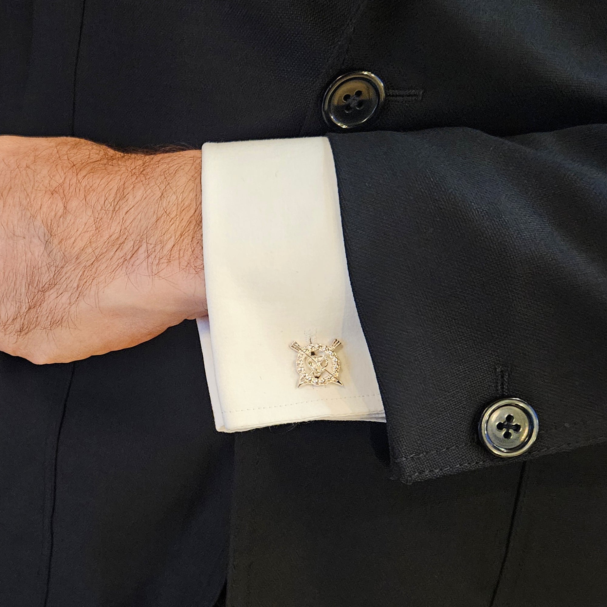The official Harrow School "Silver Arrows" chain cufflinks in Sterling Silver. The ovals of the cufflinks can be engraved with up to 4 initials for an additional £50. (Please...